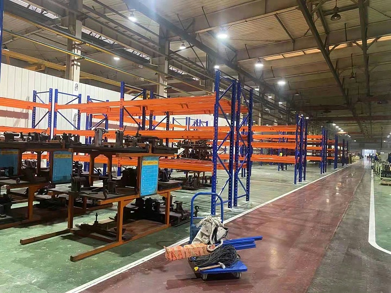 该企业选择的是重型横梁式货架以及作为分区防护作用的隔离网。仓库比较大,每个区域需要安置的物品有一定的差别,对应其不同的需求,森沃仓储规划了两种横梁式货架:一种是两层梁三层货的形式,一种是三层梁四层货的形式,对于每层之间的层高会根据实际需要去预留设计,因此拍摄的图上会显得货架层高高低不齐。